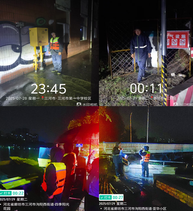 暴雨持续,三河公司抢险队员冒雨奔赴一线,对全市燃气管网、调压站、阀门井等重点部位开展拉网式巡查,特别是对低洼地段、河道沿线及老旧小区加大巡检频次,严防积水倒灌、管线裸露等风险。针对涉水严重的村街,公司果断采取应急措施,关闭调压柜并切断气源,防止次生灾害发生。抢险人员顶着风雨,踩着泥泞,逐点排查隐患,用行动诠释“汛期不停歇,安全不打烊”的承诺。